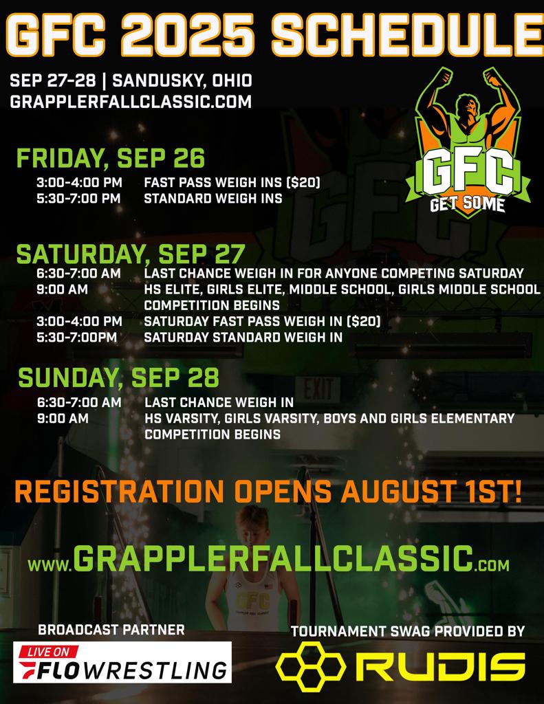 7th and 8th graders may jump in and #GETSOME in the High School division as well if they dare, but please know we will not stop the tournament or give additional rest time for wrestlers competing in multiple divisions.
